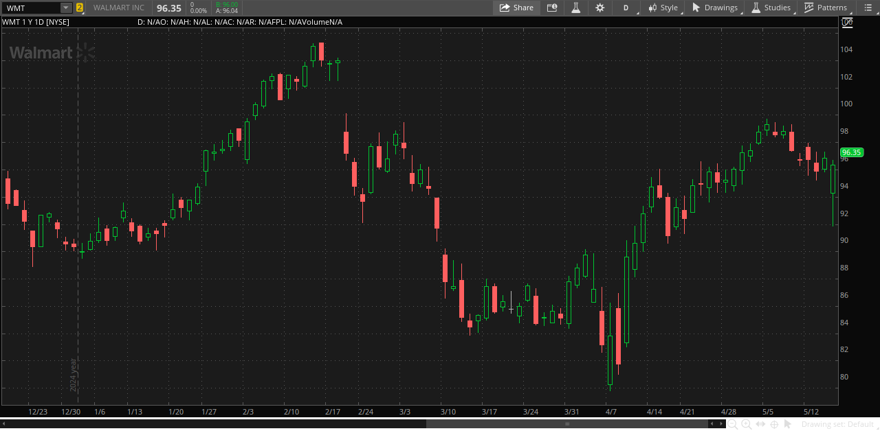 Walmart’s first-quarter earnings for fiscal 2026 beat analyst expectations on both revenue and earnings per share, driven by strong e-commerce growth and higher membership income. However, the market reaction was muted: after the report, stock declined slightly, closing down 0.5% at $96.35.