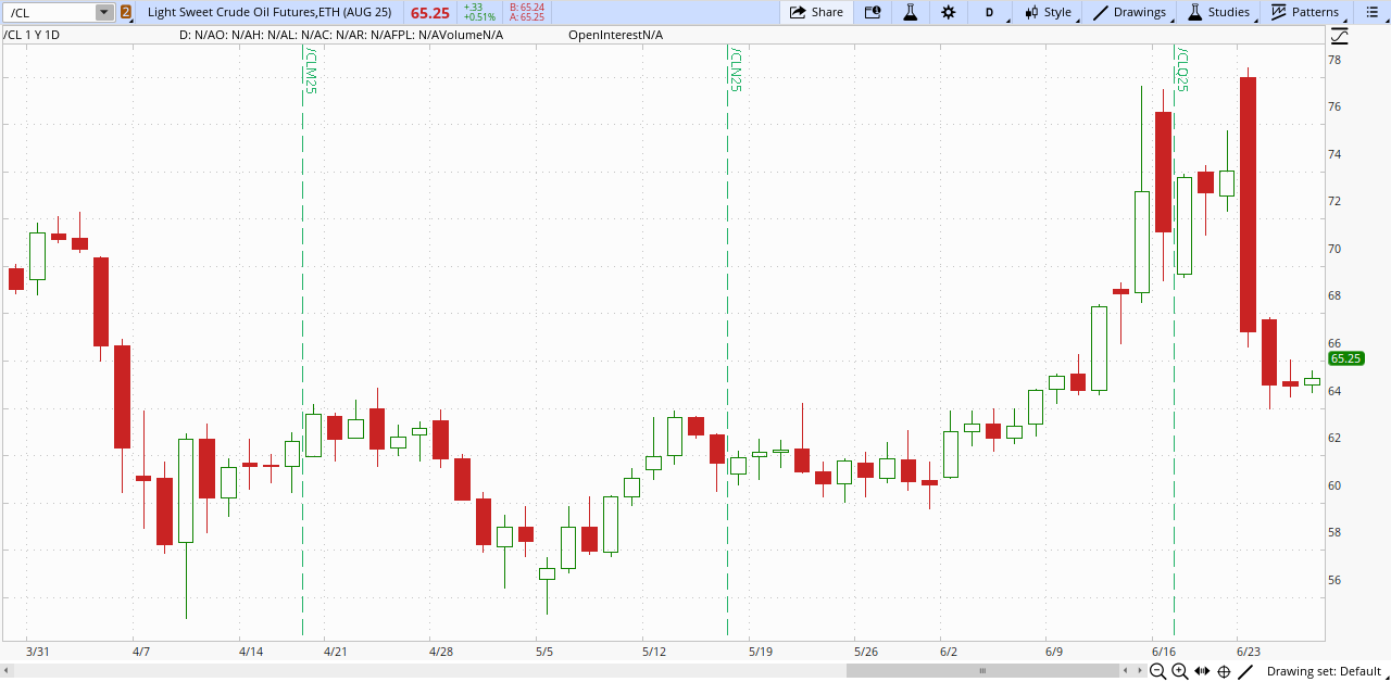 We have maintained, and continue to hold in part, a substantial position in oil futures contracts expiring in August. Following the recent price spike, we retained the position; however, as oil prices began to decline, we partially liquidated approximately two-thirds of these contracts with a relatively significant profit achieved in a short period. It is important to note that the long option on the oil futures is currently out-of-the-money. ("Out of the money" (OTM) is a term used in options trading to describe an option that currently has no intrinsic value. This means that exercising the option would not be profitable at the present market price.)