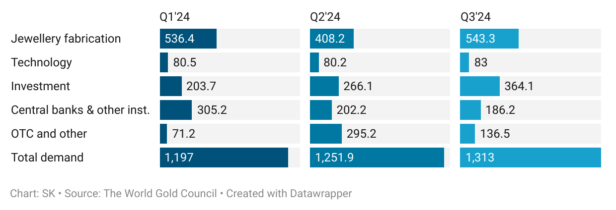 GoldDirection of GoldMacroXXNov 25, 2024∙ Paid3ShareDEMAND(Fig. 1) Global Gold Demand. 2024. Quarterly. In tonnes.This post is for paid subscribersSubscribeAlready a paid subscriber? Sign inPreviousNext